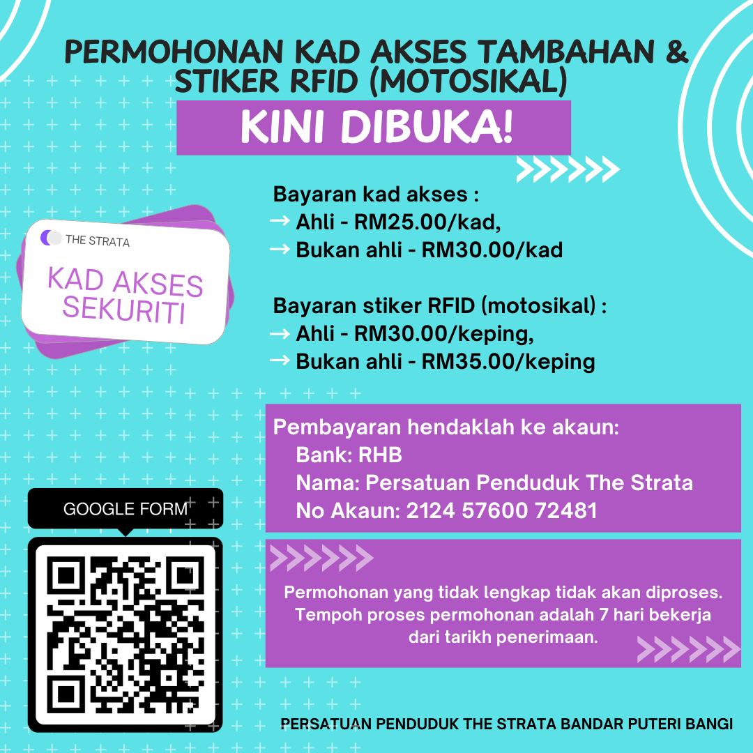 *Maksimum pemilikan kad akses bagi isirumah adalah 4 sahaja, jika ada keperluan tambahan pemohon perlu mengemukan sebab yang munasabah untuk pertimbangan.