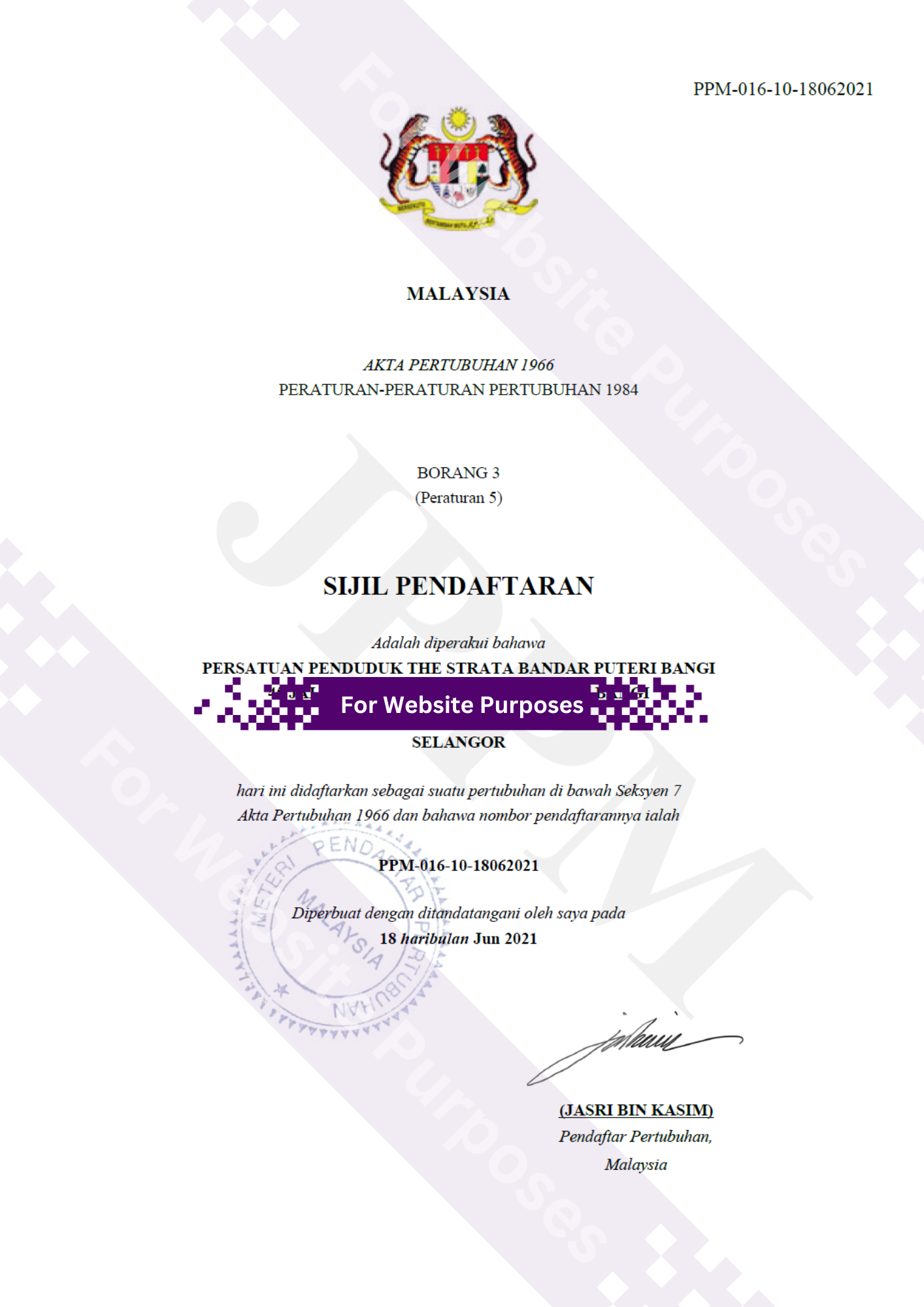 Objektif Penubuhan Persatuan Penduduk The Strata Bandar Puteri Bangi (PPM-016-10-18062021)